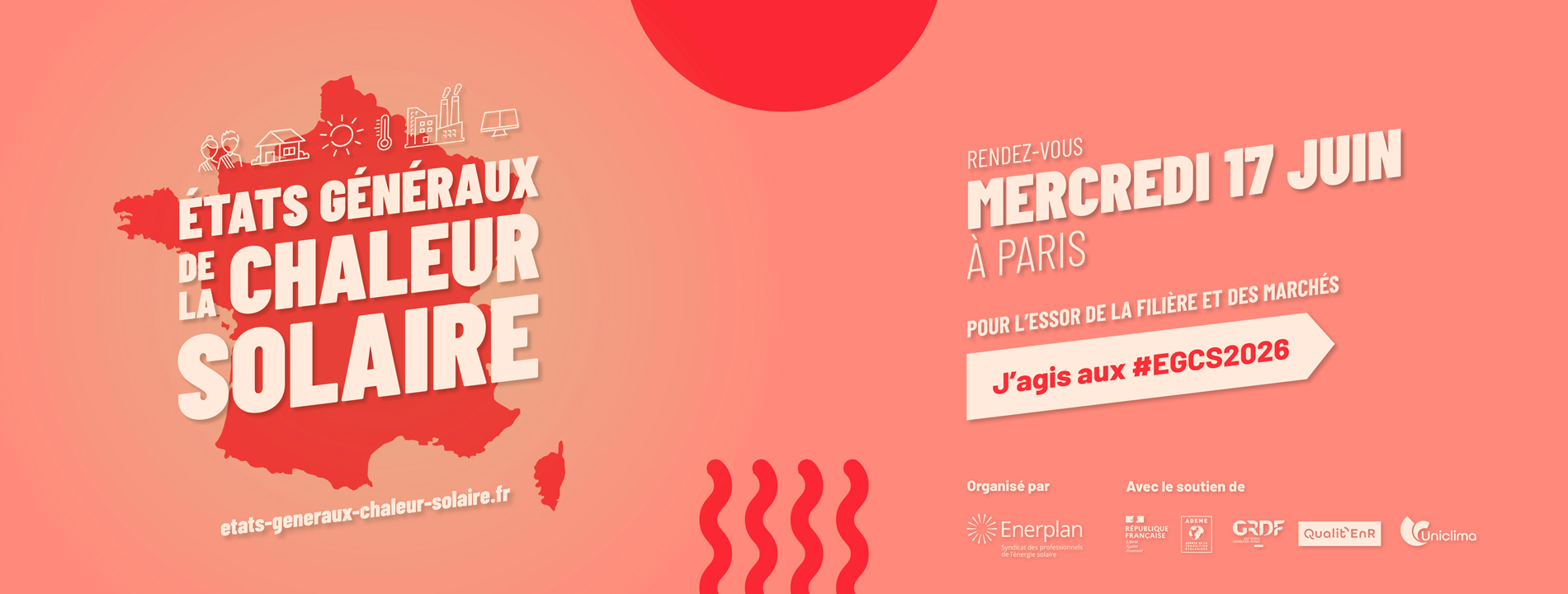 Organisé par Enerplan, le rendez-vous annuel des acteurs de la chaleur solaire rassemble les professionnels français de la filière solaire thermique ainsi que les porteurs de projets et les prescripteurs nationaux territoriaux. Proposée en format hybride (en présentiel en région et en distanciel), cette journée vous invite à découvrir les nouvelles dynamiques du marché, à échanger entre acteurs, à être témoins des retours d’expériences d’initiatives impulsées par les territoires. Les EGCS offrent un programme riche pour accélérer la décarbonation grâce à la chaleur solaire.